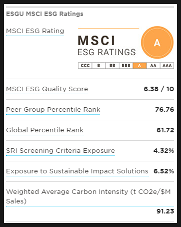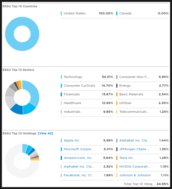 ESGU는 미국 ESG 우수 기업에 투자하기 때문에 국가는 미국 100%