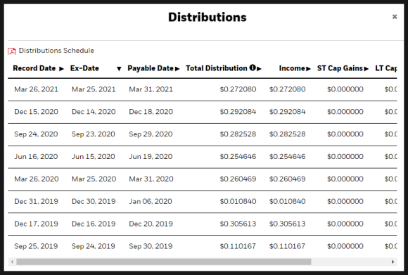 배당 지급일은 3/6/9/12월 분기배당을 해주고 있으며 현재 배당률은 0.51%로 굉장히 적네요 매 분기마다 배당금은 상이하지만 주당 평균 $0.25를 지급해주고 있습니다.