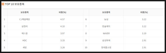 순서대로 상위 보유 종목 TOP 10 입니다.