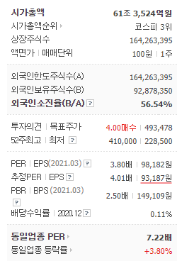 현재 네이버(NAVER)의 PER은 3.8배로 굉장히 저평가된 것처럼 보여지고 있는데요