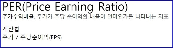 먼저 PER은 우리가 흔히 말하는 퍼로 주가수익비율이라고 합니다.