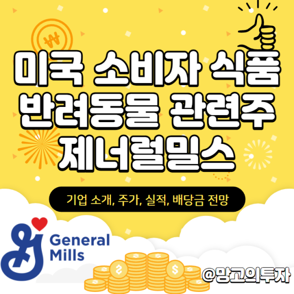 이번에는 미국 소비자 식품 및 반려동물 관련주 제너럴밀스(GIS) 주식, 기업 소개, 주가, 실적, 배당금 전망에 대해 알아보겠습니다.